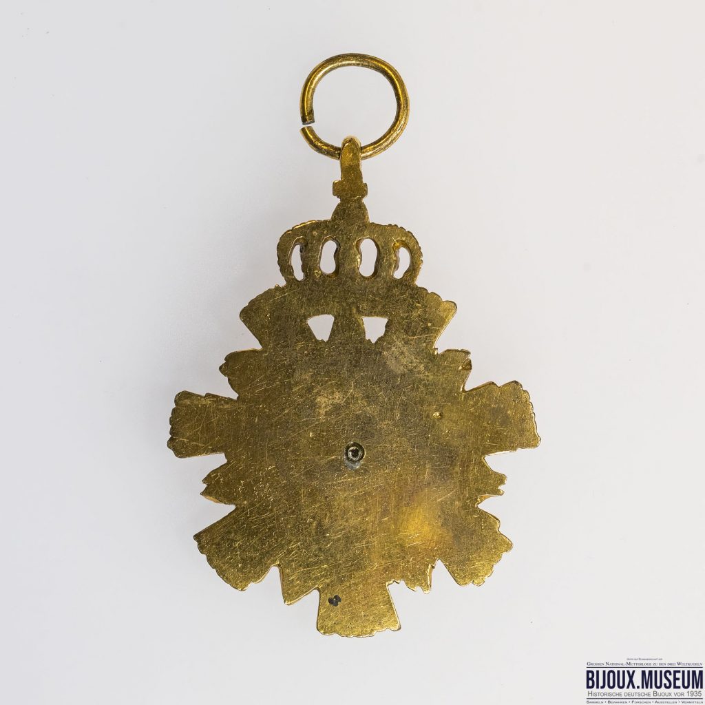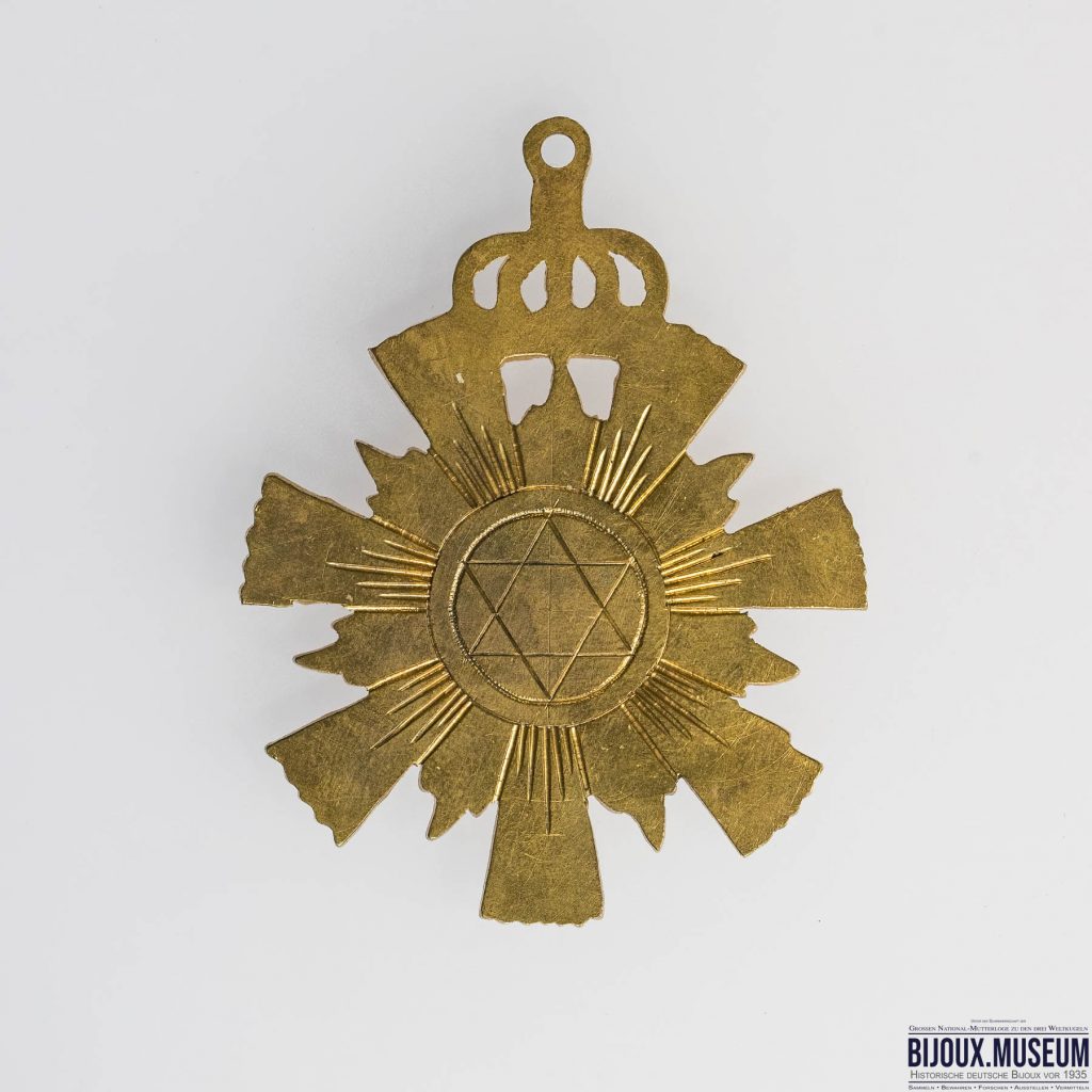 Flache Ausführung inklusive rückseitiger Gravur mit den typischen „Einkerbungen“ in den Kreuzarmen sowie den zwei Schlangen um das Medaillon.